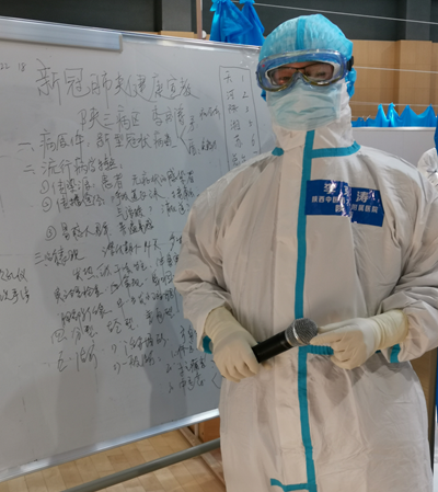 即使在輪休時(shí)間,他也經(jīng)常主動(dòng)進(jìn)艙,為患者貼心宣講新冠知識(shí)。在艙外,他還要分析整理病例,協(xié)調(diào)處理困難,錄制宣教節(jié)目,常常工作至深夜。