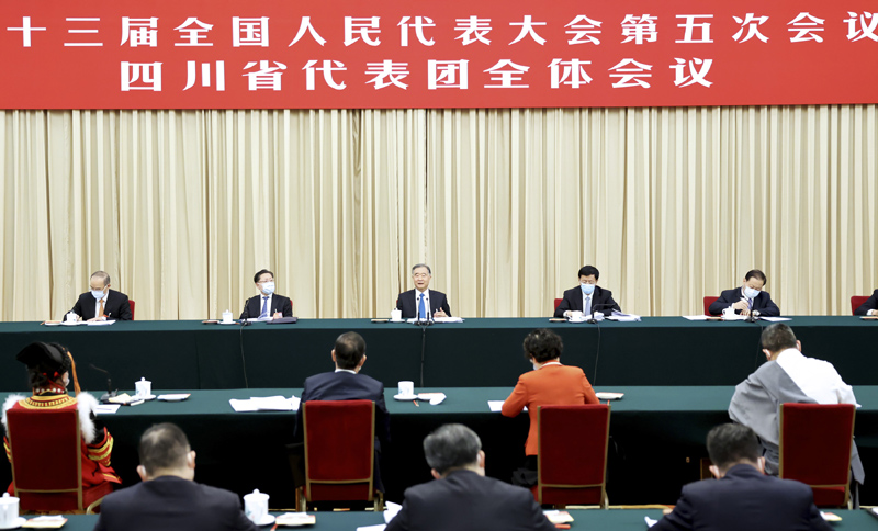 3月5日,中共中央政治局常委、全國政協主席汪洋參加十三屆全國人大五次會議四川代表團的審議。新華社記者 劉彬 攝